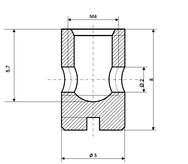 Otwór na złączkę śrubową Ø 2,0 mm, trzpień Ø 5 mm z mosiądzu