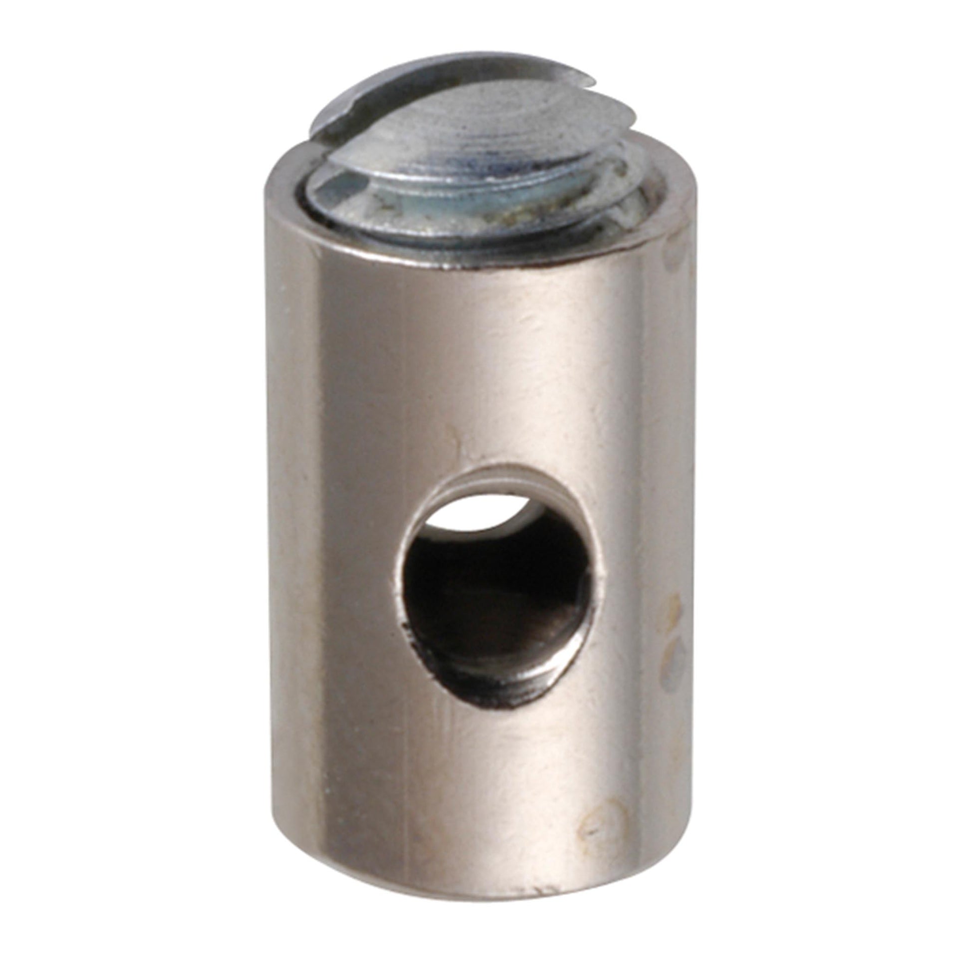 Wał Ø 5 mm, długość 8 mm wykonany z mosiądzu, niklowany, mocowany za pomocą śruby ustalającej M 4 x 5 mm wykonany ze stali, ocynkowany Otwór Ø 2,7 mm